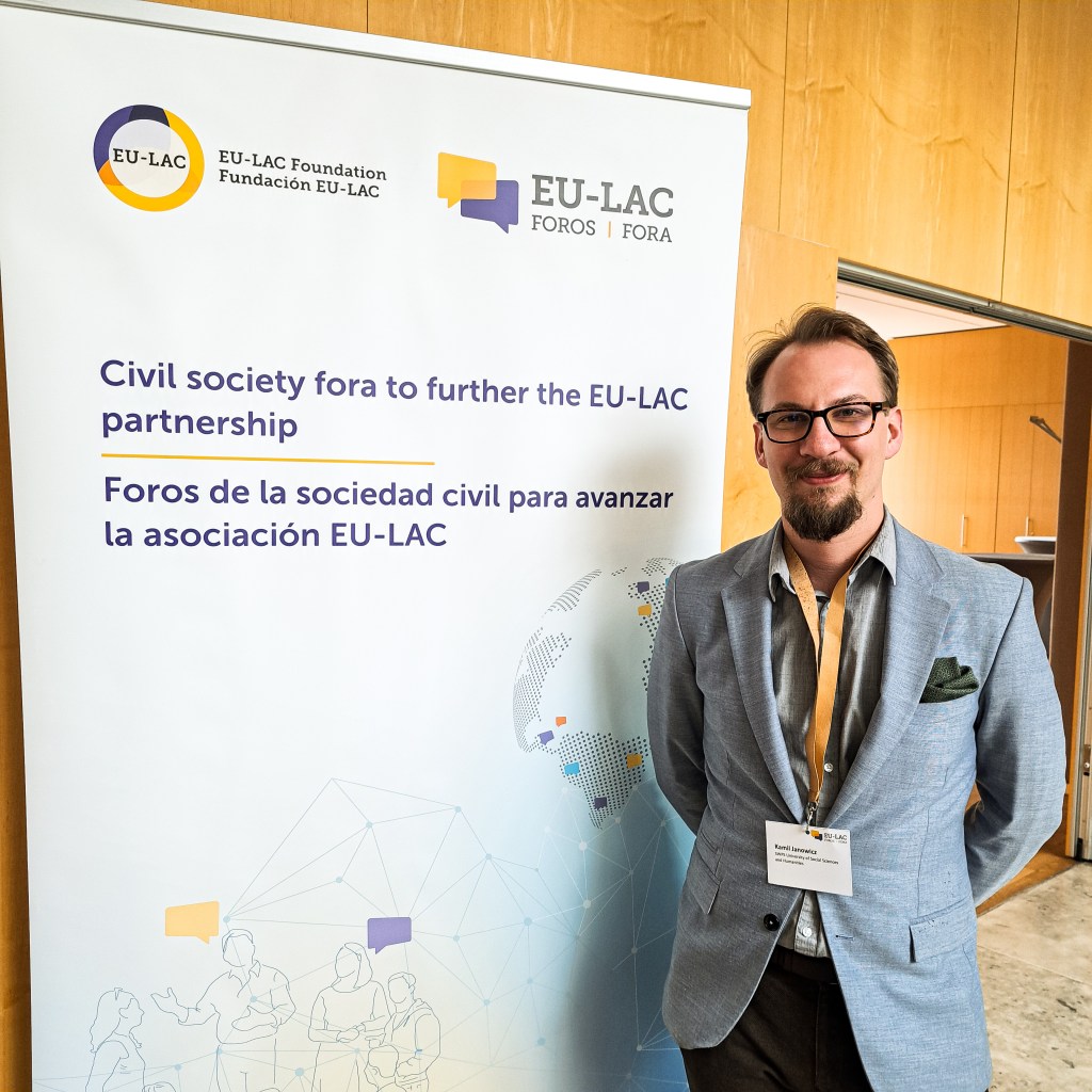 Na zaproszenie EU-LAC Foundation oraz MSZ Niemiec i Hiszpanii, wziąłem w dniach 11.-12.05.2023 udział w EU-LAC Gender Equality Forum. Było to spotkanie przedstawicieli_ek świata polityki, nauki i organizacji społecznych z Unii Europejskiej, Karaibów oraz Ameryki Łacińskiej. Celem Forum było: 1) wypracowanie rekomendacji dot. wspierania równości płci w ramach przygotowania do szczytu UE na ten temat; 2) wzmacniani współpracy na rzecz równości płci pomiędzy krajami UE, Karaibów i Ameryki Łacińskiej. Podczas Forum pracowałem w grupie roboczej skupionej na rozwiązywaniu nierówności społecznych i ekonomicznych.